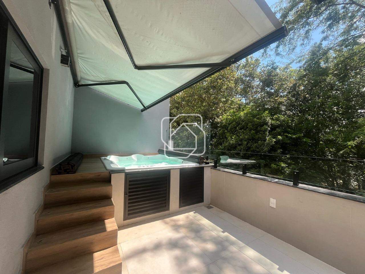 No exterior, uma hidromassagem com capacidade para 7 pessoas proporciona relaxamento exclusivo. A casa é equipada com energia fotovoltaica e aquecimento elétrico nas torneiras, tornando-a sustentável e econômica.