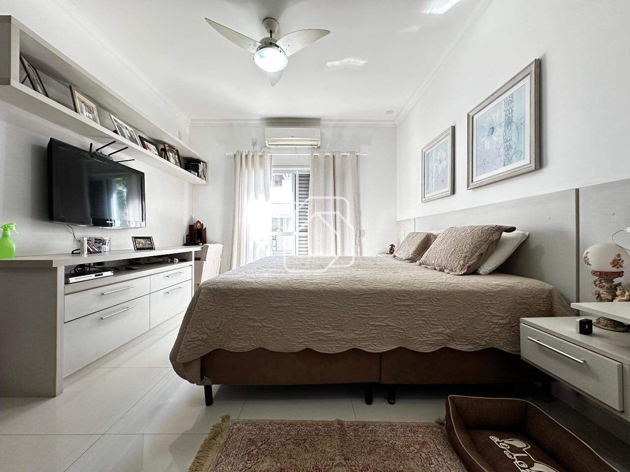 Na área íntima, são três suítes com ar-condicionado e móveis planejados, garantindo conforto e organização.